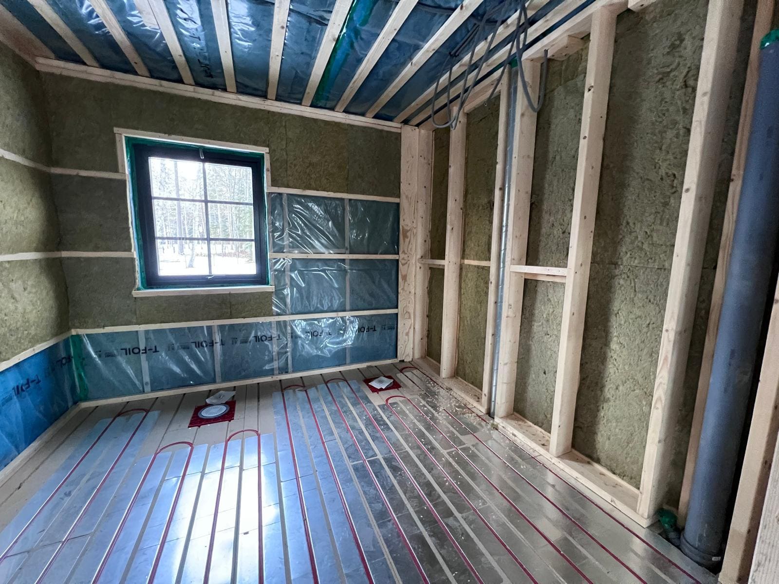 Komplett vattenburen golvvärme i hela huset, installerad i spårat spån med värme plåtar.