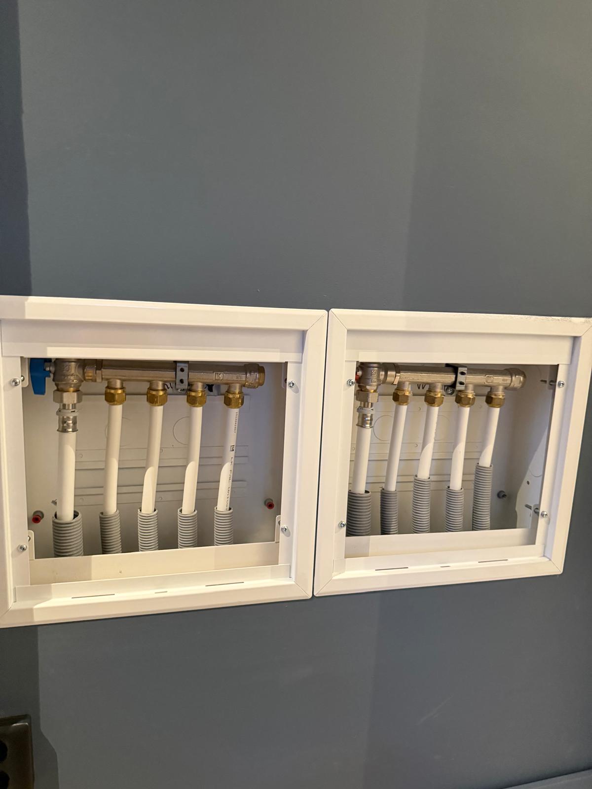 Golv värmesystemet från TECE installerades med trådlös digital rums styrning.